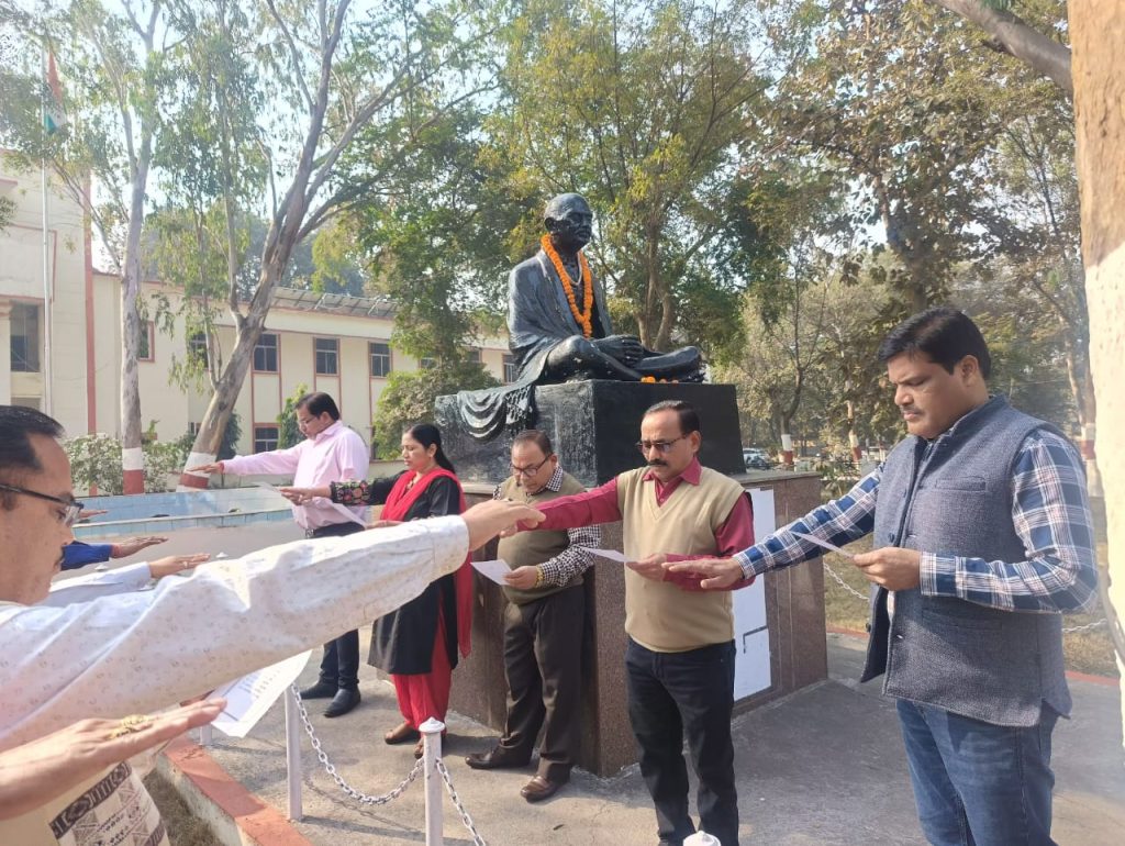 रायगढ़, 24 जनवरी 2025/ कलेक्टोरेट परिसर में आज कलेक्ट्रेट के अधिकारी एवं कर्मचारियों ने सामूहिक रूप से मतदाता शपथ लिए। सभी ने शपथ किया कि हम, भारत के नागरिक लोकतंत्र में अपनी पूर्ण आस्था रखते हुए यह शपथ लेते हैं कि हम अपने देश की लोकतांत्रिक परम्पराओं की मर्यादा को बनाये रखेंगे तथा स्वतंत्र, निष्पक्ष एवं शांतिपूर्ण निर्वाचन की गरिमा को अक्षुण्ण रखते हुए, निर्भीक होकर, धर्म, वर्ग, जाति, समुदाय, भाषा अथवा अन्य किसी भी प्रलोभन से प्रभावित हुए बिना सभी निर्वाचनों में अपने मताधिकार का प्रयोग करेंगें।