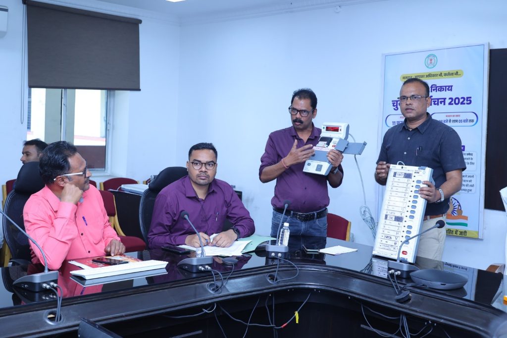 रायगढ़, 3 फरवरी 2025/ कलेक्टर एवं जिला निर्वाचन अधिकारी श्री कार्तिकेया गोयल के निर्देशन में नगरीय निकाय निर्वाचन-2025 के तहत आज कलेक्टोरेट सभाकक्ष में मीडिया प्रतिनिधियों के लिए ईवीएम डेमो प्रदर्शन का आयोजन किया गया। इस अवसर पर संयुक्त कलेक्टर श्री राकेश कुमार गोलछा, डिप्टी कलेक्टर एवं नोडल अधिकारी निर्वाचन श्री समीर बड़ा उपस्थित रहे।