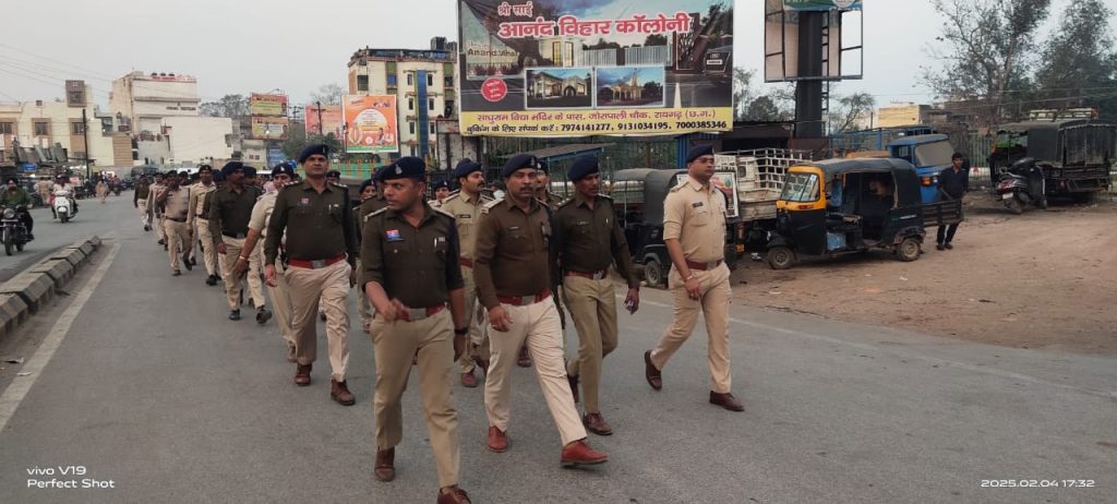 फ्लैग मार्च की शुरुआत रामलीला मैदान से हुई और पुलिस दस्ते ने घड़ी चौक, हटरी चौक, सुभाष चौक, अग्रसेन चौक, शहीद चौक, हेमू कलानी चौक होते हुए चक्रधरनगर तक का कड़ा पहरा देते हुए गश्त किया। पुलिस की मौजूदगी से पूरा शहर सख्त कानून व्यवस्था के संदेश से गूंज उठा।
