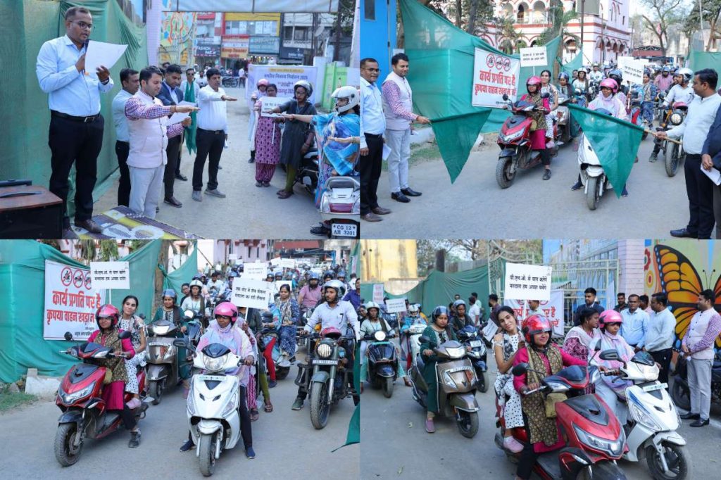 निगम आयुक्त श्री क्षत्रिय के मार्गदर्शन में 200 से अधिक लोगों ने बाइक रैली के माध्यम से मतदाता जागरूकता रथ के साथ शहर के सभी मुख्य मार्गों का भ्रमण किया। इसमें निगम कार्यालय से बेटी बचाओ-बेटी पढ़ाओ चौक, सतीगुड़ी चौक, केवड़ाबाड़ी बस स्टैंड से होते हुए ढिमरापुर चौक पहुुंचे। इसी तरह ढिमरापुर चौक से वापस होकर बस स्टैंड से इंदिरा नगर, चांदमारी, मरीन ड्राइव होते हुए केलो पुल, चक्रधर नगर चौक, बोईरदादर चौक, चक्रपथ, जेल रोड, कबीर चौक होते हुए छातामुडा चौक से वापस निगम कार्यालय में संपन्न हुई। बाईक रैली के माध्यम से 11 फरवरी को अपने मताधिकार का प्रयोग करते हुए मतदान अवश्य करने की अपील की गई।
