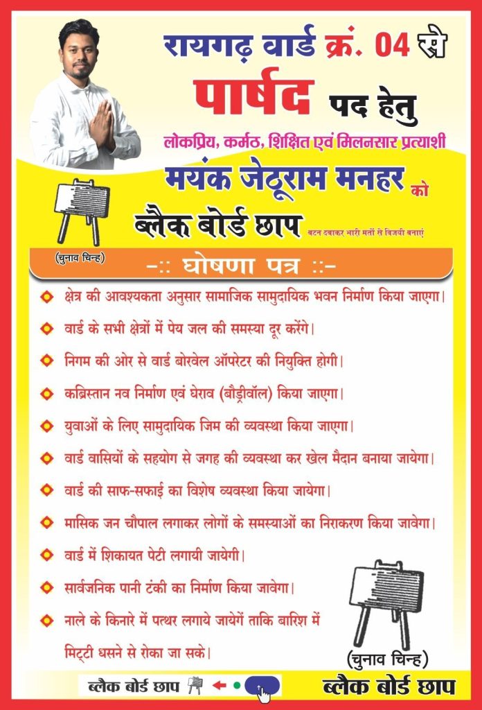 - वार्ड 04 में बदलाव की लहर: निर्दलीय प्रत्याशी मयंक मनहर को लेकर लोगों में जबरदस्त उत्साह
