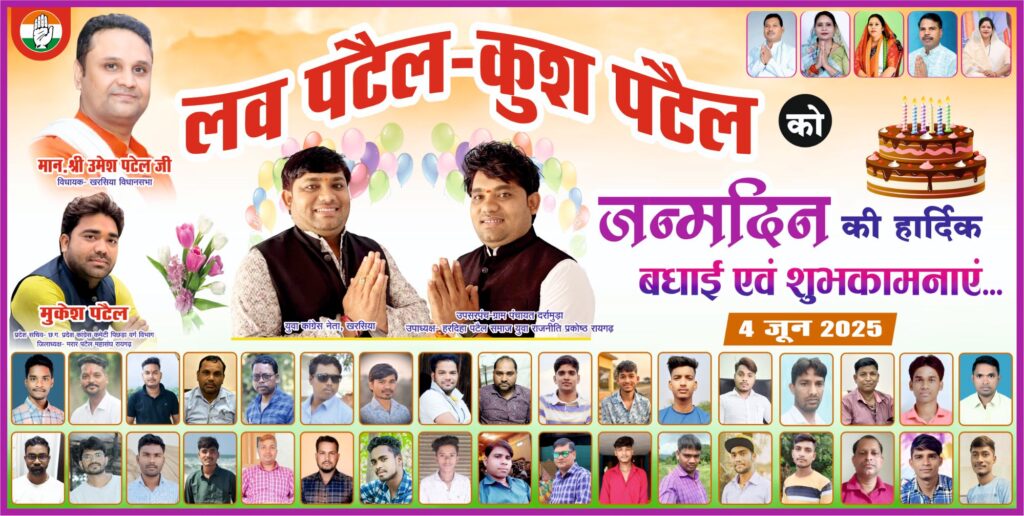 रायगढ़। खरसिया विधायक उमेश पटेल जी के बेहद करीबी और लोकप्रिय युवा नेता, ग्राम दर्रामुड़ा निवासी लव पटेल एवं कुश पटेल ने अपने जन्मदिन के अवसर पर आध्यात्मिक मार्ग अपनाते हुए कोसमनारा स्थित श्री सत्यनारायण बाबा धाम में दर्शन कर आशीर्वाद प्राप्त किया।
