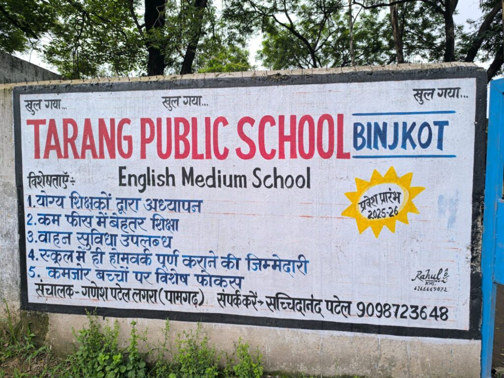 जानकारी के अनुसार, स्कूल का प्रचार-प्रसार तेजी से किया जा रहा है। बिंजकोट और आसपास के कई गांवों की दीवारों पर पेंटिंग के माध्यम से विज्ञापन करवाए गए हैं। लेकिन हैरानी की बात यह है कि इस प्रचार से सरकारी स्कूल भी अछूते नहीं रहे।