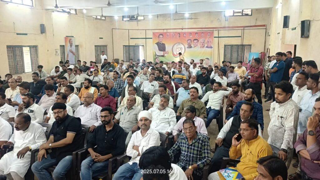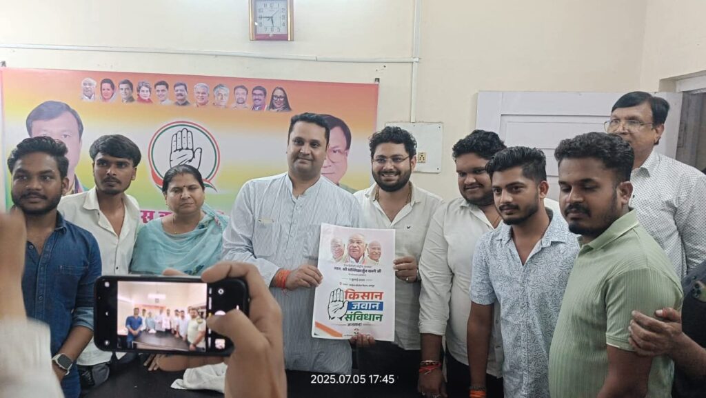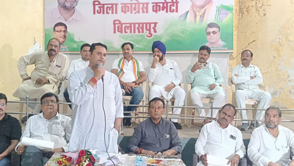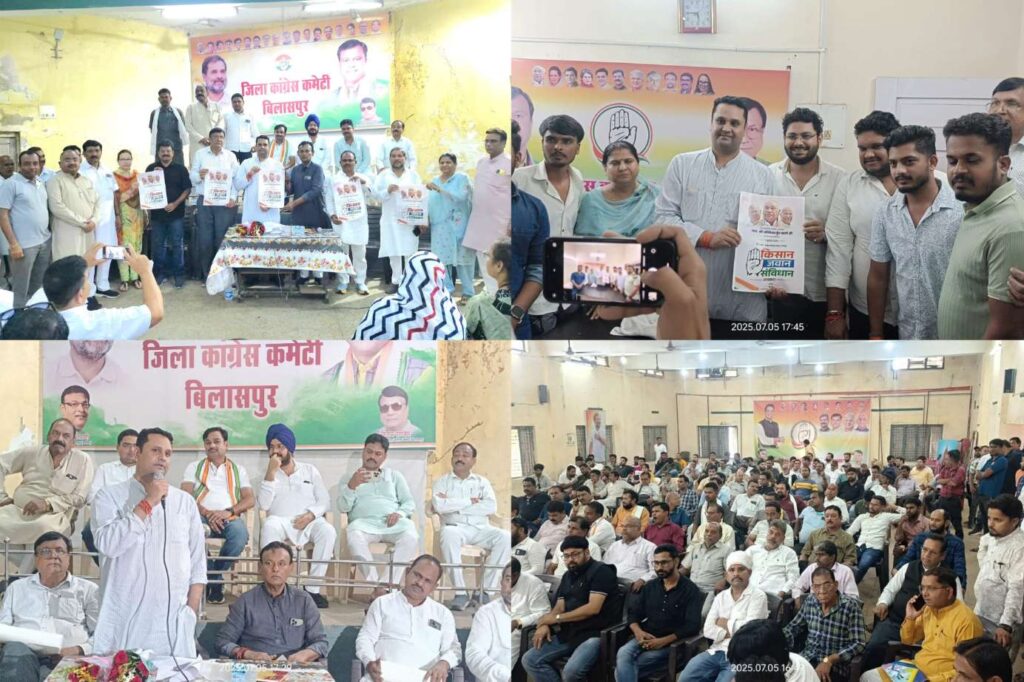 बिलासपुर, 05 जुलाई 2025 — रायपुर में आगामी 07 जुलाई को आयोजित “किसान—जवान—संविधान जनसभा” की तैयारियों को लेकर आज बिलासपुर के कांग्रेस भवन में एक महत्वपूर्ण बैठक आयोजित की गई। इस बैठक में कांग्रेस के राष्ट्रीय अध्यक्ष माननीय श्री मल्लिकार्जुन खड़गे जी का संदेश कार्यकर्ताओं तक पहुंचाया गया, जिसमें उन्होंने बिलासपुर जिले से अधिक से अधिक संख्या में कांग्रेस पदाधिकारियों, कार्यकर्ताओं और आमजनता की भागीदारी सुनिश्चित करने का आह्वान किया।