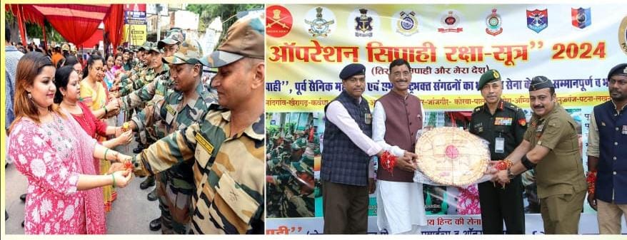 खरसिया। बॉर्डर पर तैनात इंडियन आर्मी जो कि त्योहारों के अपने घर नहीं जा पाते हमारी रक्षा हेतु अपनी जान जोखिम में डालकर हमारी रक्षा करते है। उनके लिए पूर्व भारतीय सैनिकों द्वारा छत्तीसगढ़ से लाखों राखियां और हर शहर की मिट्टी लेकर बॉर्डर पर जाया जा रहा है। इसी कड़ी में ऑपरेशन सिपाही रक्षा सूत्र जिसमें हेल्पिंग हैंड्स क्लब फाउंडेशन भी अपना योगदान दे रही है। भारत की मिट्टी को गौरवान्वित करने वाला अभियान जो भारत के लोगो के देशप्रेम और सैनिकों की मार्मिक भावनाओं को पूर्व सैनिकों द्वारा आपस में मिलाता है।