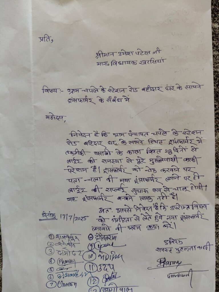 दरअसल, 17 जुलाई को बहीदार मोहल्ले के समस्त ग्रामवासियों ने विधायक उमेश पटेल को एक लिखित आवेदन सौंपकर ट्रांसफार्मर की समस्या से अवगत कराया था। आवेदन में बताया गया था कि पुराना ट्रांसफार्मर खराब हो चुका है और इसे ठीक करना संभव नहीं है, जिसके कारण पूरे मोहल्ले में बिजली की आपूर्ति ठप हो गई थी। इस समस्या को समझते हुए विधायक उमेश पटेल ने तुरंत बिजली विभाग के अधिकारियों को निर्देश दिए और मामले को प्राथमिकता पर लेते हुए त्वरित समाधान का आश्वासन दिया। उनकी सक्रियता और जनता के प्रति जवाबदेही का ही परिणाम है कि मात्र पांच दिनों के भीतर नया ट्रांसफार्मर लगाने का कार्य पूरा हो गया।