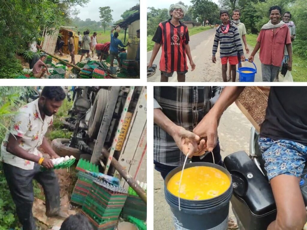 बता दें कि पिकअप वाहन जो रायगढ़ जिले के खरसिया से अंडा लोडकर कुकरगांव के रास्ते कांसाबेल जा रही थी। पिकअप वाहन जैसे ही कुकरगांव पंचायत भवन के पास पहुंचीं, वहां मोड़ के कारण चालक संतुलन खो बैठा और पिकअप को एक पेड़ में टक्कर मार दी और पलट गया। पिकअप के हादसे के बाद चालक मौके से वाहन छोड़कर फरार हो गया।