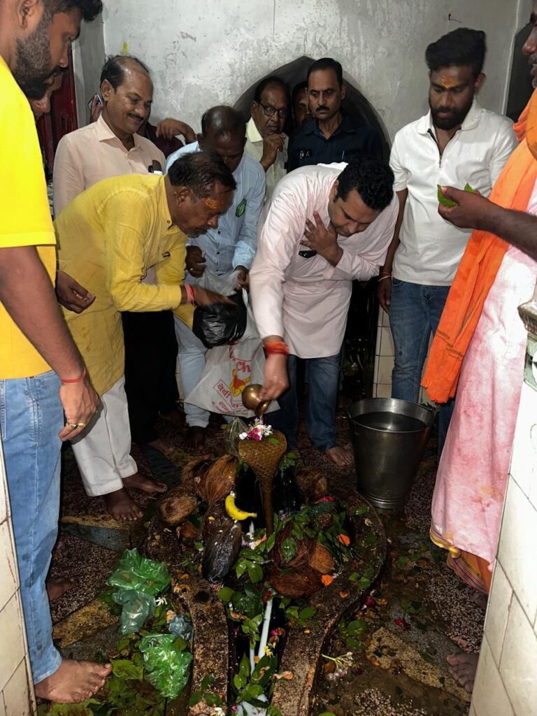 खरसिया। श्रावण मास के अंतिम सोमवार के पावन अवसर पर खरसिया विधायक उमेश पटेल ग्राम बरगढ़ स्थित श्री सिद्धेश्वर नाथ महादेव मंदिर पहुंचे और भोलेनाथ का दर्शन कर विधिवत जलाभिषेक व पूजा-अर्चना की। हर वर्ष की तरह इस वर्ष भी उन्होंने पूरी श्रद्धा और आस्था के साथ भगवान शिव का पूजन कर क्षेत्रवासियों के सुख, समृद्धि और खुशहाली की कामना की। इस दौरान उनके साथ कांग्रेस के कई स्थानीय नेता और कार्यकर्ता भी मौजूद रहे, जिन्होंने भी भोलेनाथ का आशीर्वाद प्राप्त किया।