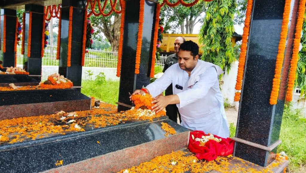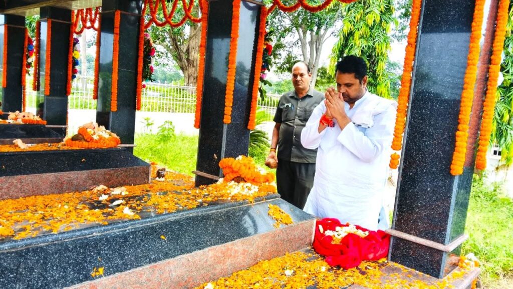 खरसिया, 10 अगस्त। आज रविवार को खरसिया विधायक उमेश पटेल ने अपने बड़े भाई, शहीद दिनेश पटेल की जयंती के अवसर पर गृह ग्राम नंदेली में स्थित शांति बगिया समाधी स्थल पर पहुंचकर उन्हें भावभीनी श्रद्धांजलि अर्पित की। इस दौरान विधायक ने अपने भाई के बलिदान और उनकी स्मृतियों को याद करते हुए नमन किया। यह पल न केवल उनके लिए, बल्कि पूरे समुदाय के लिए भावुक और गर्व का क्षण था, क्योंकि शहीद दिनेश पटेल की यादें आज भी लोगों के दिलों में जीवित हैं।