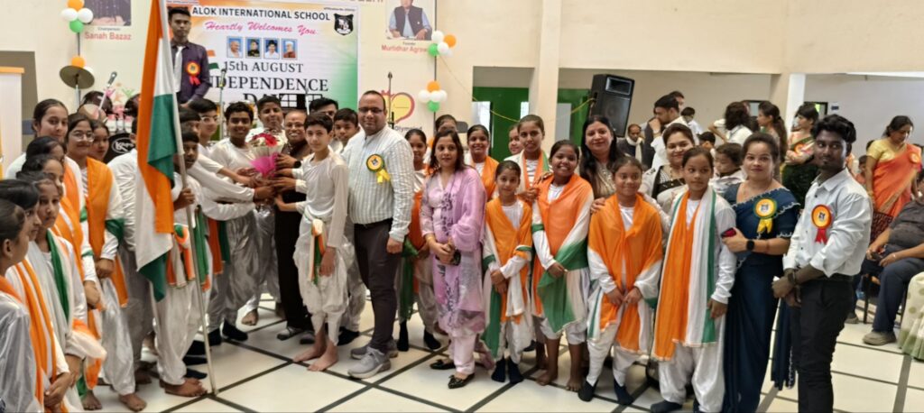 खरसिया। खरसिया के अलोक इंटरनेशनल स्कूल रजघटा में 15 अगस्त के अवसर पर 79वां स्वतंत्रता दिवस हर्षोल्लास के साथ मनाया गया। कार्यक्रम की शुरुआत ध्वजारोहण और राष्ट्रगान से हुई, जिसके बाद स्कूल प्रांगण में रंगारंग सांस्कृतिक कार्यक्रम आयोजित किए गए। छात्रों ने देशभक्ति गीत, भाषण, नाटक और झमाझम डांस प्रस्तुत करके उपस्थित दर्शकों का मन मोह लिया। इस अवसर पर बच्चों के साथ-साथ उनके अभिभावक भी कार्यक्रम में उपस्थित रहे और उन्होंने बच्चों के प्रदर्शन का आनंद लिया।