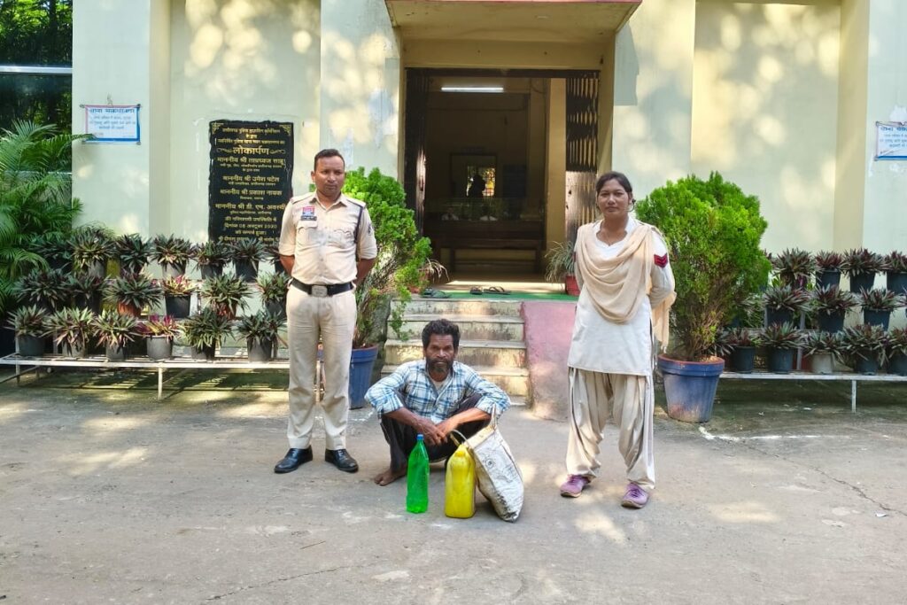 पकड़े गए व्यक्ति ने अपना नाम बुदराम बौहान (55 वर्ष), निवासी ग्राम चिराईपानी थाना कोतरारोड, जिला रायगढ़ बताया। तलाशी लेने पर उसके थैले से 1 प्लास्टिक जरीकैन और 1 कोल्डड्रिंक की बोतल में भरा करीब 07 लीटर महुआ शराब बरामद हुआ।