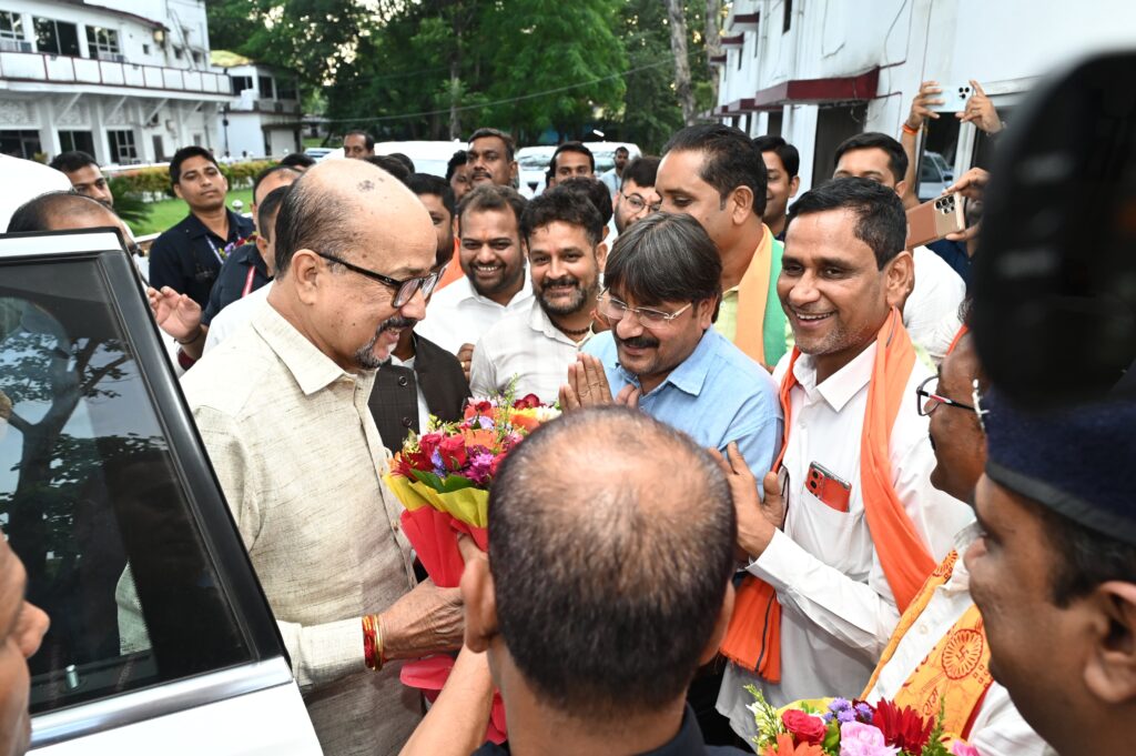 रायगढ़, 27 अगस्त 2025/ राज्यपाल श्री रमेन डेका आज अंतरराष्ट्रीय ख्याति प्राप्त चक्रधर समारोह में शामिल होने के लिए रायगढ़ पहुंचे। उनके आगमन पर सर्किट हाउस परिसर में गरिमामय स्वागत किया गया। नगर निगम रायगढ़ के महापौर श्री जीवर्धन चौहान सहित स्थानीय जनप्रतिनिधिगण, गणमान्य नागरिकगण, कलेक्टर श्री मयंक चतुर्वेदी एवं पुलिस अधीक्षक श्री दिव्यांग पटेल ने पुष्पगुच्छ भेंटकर राज्यपाल का आत्मीय अभिनंदन किया।