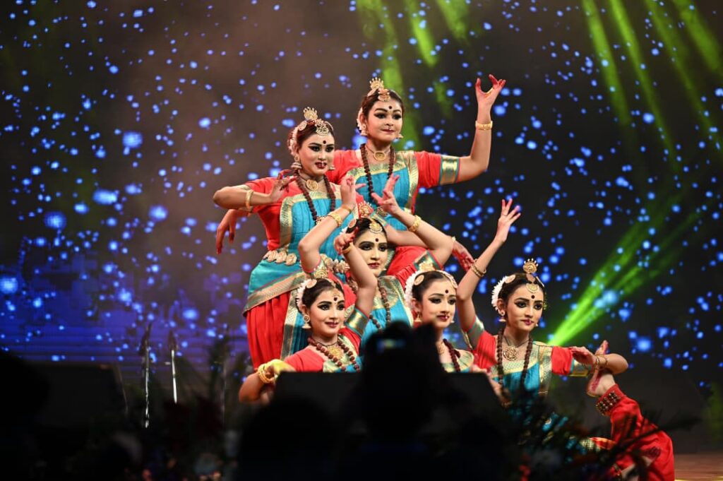 रायगढ़, 28 अगस्त 2025/ चक्रधर समारोह के दूसरे दिन गुरुवार को भिलाई से आईं प्रख्यात नृत्यांगना और भरतनाट्यम डॉ. राखी रॉय ने अपने शिष्यों के साथ भरतनाट्यम की शानदार प्रस्तुति से रामलीला मैदान में मौजूद दर्शकों को भावविभोर कर दिया। उनकी प्रस्तुति में भरतनाट्यम की पारंपरिक गरिमा, गहन अभिव्यक्ति और अद्भुत लयताल का ऐसा संगम देखने को मिला जिसने हर किसी के मन को छू लिया। डॉ. रॉय ने अपने नृत्य में भारतीय शास्त्रीय नृत्य की गहराई को उजागर करते हुए विभिन्न भावों और मुद्राओं के माध्यम से भक्ति और रसमयता की सजीव छटा बिखेरी।