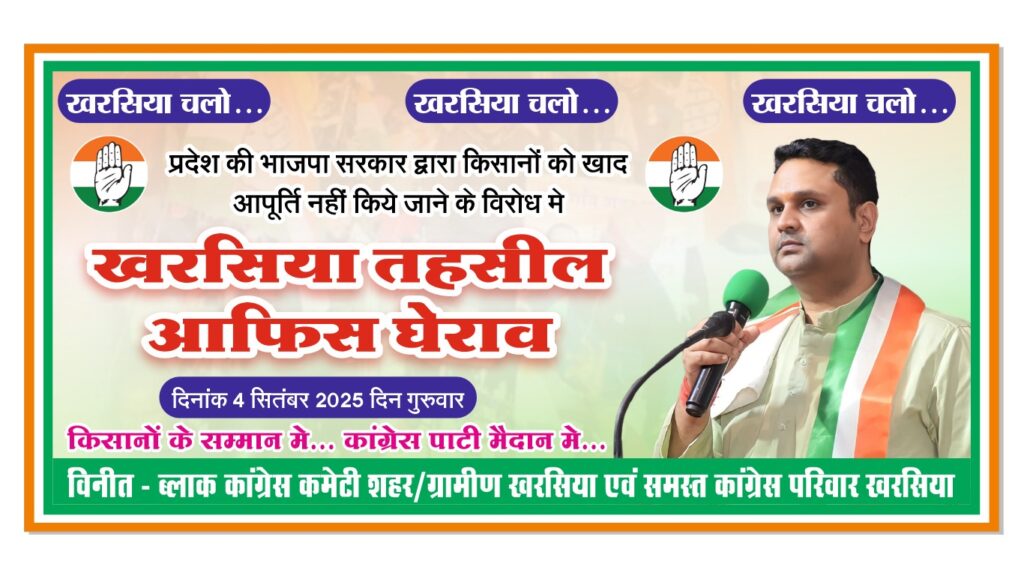 इसी कड़ी में खरसिया विधायक उमेश पटेल के नेतृत्व में 4 सितंबर 2025, दिन गुरुवार को दोपहर 12 बजे तहसील कार्यालय खरसिया का घेराव किया जाएगा। कांग्रेस कार्यकर्ताओं का कहना है कि किसानों की मांग को अनसुना नहीं किया जा सकता और उन्हें जल्द से जल्द पर्याप्त मात्रा में खाद उपलब्ध कराना प्रशासन की जिम्मेदारी है।