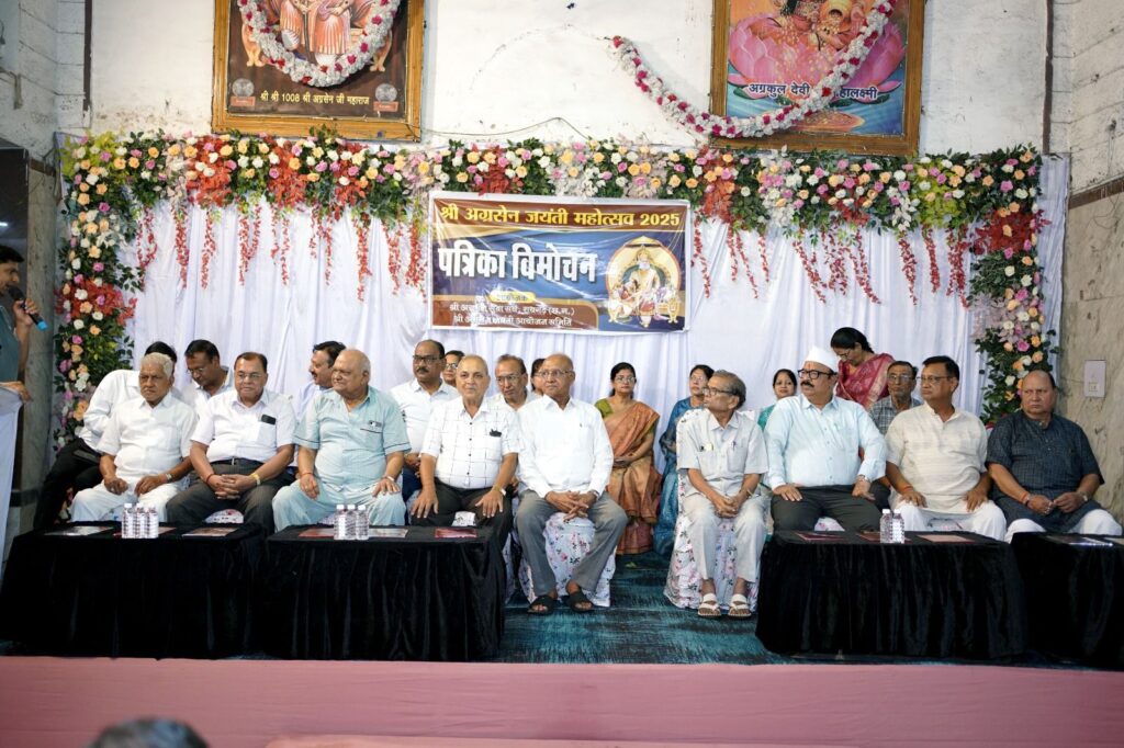 पत्रिका विमोचन समाहरोह में सर्वप्रथम उपस्थित अतिथियों ने महाराजा अग्रसेन की प्रतिमा के आगे दिप प्रज्वलित कर कार्यक्रम का शुभारंभ किया। समिति के सदस्यों ने अतिथियों का पुष्पगुच्छ और श्री अग्रसेन दुपट्टे से अभिनन्दन किया। इसके बाद वरिष्ठ जनों के कर कमरों द्वारा पत्रिका 2025 का विमोचन हुआ। जयंती आयोजन में इसवर्ष सुनील अग्रवाल (लेन्ध्रा) को संयोजक,अनूप रतेरिया,कविता बेरीवाल,रेखा महमिया को अध्यक्ष और मनीष दवाई,कमलेश रतेरिया,आर्यन अग्रवाल, महिलाओ में रीना बापोडिया, शालू अग्रवाल और कशिश अग्रवाल को उपाध्यक्ष बनाया गया है।इन्ही के कुसल नेतृत्व में इसवर्ष जयंती के सभी आयोजन होंगे। महाराजा अग्रसेन जयंती 12 सितंबर को प्रारंभ होगी जो 22 सितंबर तक चलेगी एवं 24 सितंबर को समापन एवं पुरस्कार वितरण समारोह को आयोजन किया जाएगा। अधीश रतेरिया ने सफल मंच संचालन किया।