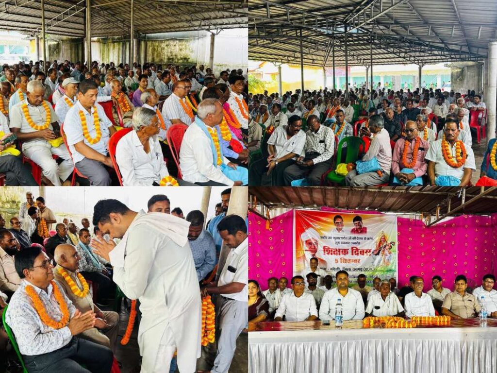 नंदेली- अज्ञानता को दूर करके ज्ञान की ज्योति जलाने वाले समस्त गुरुजनों को निश्चय ही हम जितना भी सम्मान दें कम है, क्योंकि शिक्षक हमारे जीवन का वह व्यक्ति होता है जो कि हमें इस जीवन में सही तरीके से रहने का तरीका सीखाते हैं जिससे हम अच्छे व बुरे की परख करना सिखते हैं, शिक्षकों के सम्मान की शुरुआत अविभाजित मध्य प्रदेश के पूर्व गृहमंत्री, व छत्तीसगढ़ प्रदेश कांग्रेस के अध्यक्ष रहे शहीद नंद कुमार पटेल जी ने किया था, इस नेक कार्य को उनके सुपुत्र पूर्व उच्च शिक्षा मंत्री व खरसिया विधायक उमेश पटेल आज पर्यंत तक करते आ रहे है।यह कार्यक्रम श्री राधा कृष्ण मंदिर के बगल दुर्गा पंडाल में संपन्न हुआ।