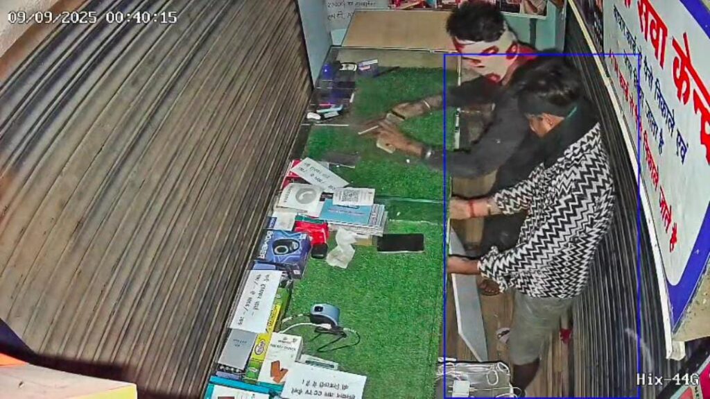 रायगढ़। कोडा़तराई बस स्टैंड के पास सविन मोबाईल दुकान में चोरी की वारदात सामने आई है। बीती रात 12 बजे के बाद दो अज्ञात शातिर चोरों दुकान के हाडवेस्टर छप्पर को तोड़कर अंदर घुसे और दुकान में रखे मोबाइल फोन से हाथ साफ करते नजर आ रहे हैं।