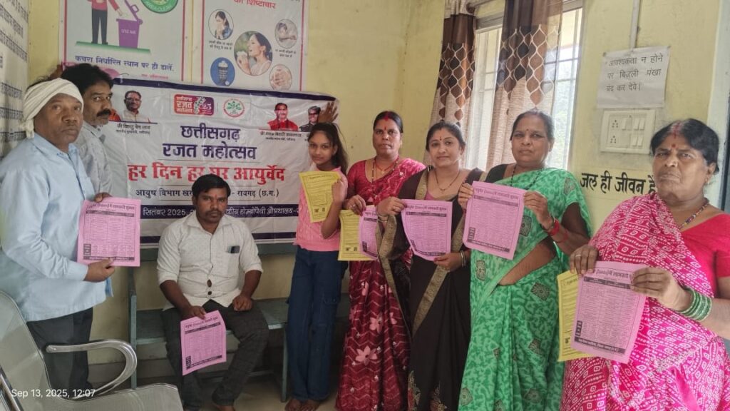 रायगढ़, 16 सितम्बर 2025/ छत्तीसगढ़ राज्य की स्थापना के रजत जयंती महोत्सव के अवसर पर आयुष विभाग द्वारा जिलेभर में स्वास्थ्य जागरूकता और नि:शुल्क चिकित्सा सेवाओं को बढ़ावा देने हेतु विशेष कार्यक्रम आयोजित किए जा रहे हैं। इन आयोजनों का मुख्य उद्देश्य आमजन को आयुर्वेद, होमियोपैथी एवं पारंपरिक चिकित्सा पद्धतियों के महत्व से जोडऩा और स्वस्थ जीवनशैली अपनाने के लिए प्रेरित करना है।