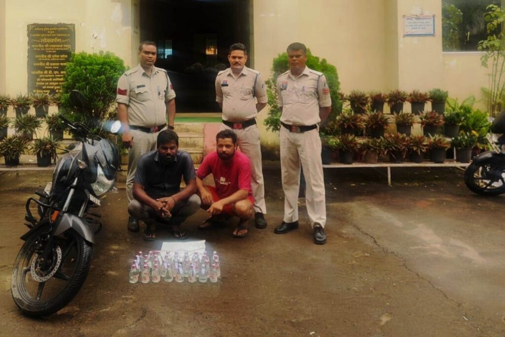 पकड़े गए व्यक्तियों की पहचान मोटरसायकल चालक मोहम्मद साबीर पिता मोहम्मद मुनीर निवासी चांदनी चौक और उसके पीछे बैठे मोहम्मद सद्दाम मलिक पिता स्वर्गीय कुतुबुद्दीन मलिक उम्र 36 वर्ष निवासी मधुबनपारा के रूप में हुई। जांच के दौरान मोहम्मद सद्दाम मलिक के कब्जे में रखे प्लास्टिक थैले से 35 पाव देशी मदिरा बरामद हुई। पूछताछ में दोनों ने शराब को अवैध बिक्री के लिए ले जाना स्वीकार किया। आरोपियों से 35 पाव देशी मदिरा शराब कीमती 2800 रूपये और एक काला रंग का होण्डा लिवो मोटर सायकल क्र0 CG 13 AU 4232 कीमती 40,000/- रूपये को जप्त किया गया ।