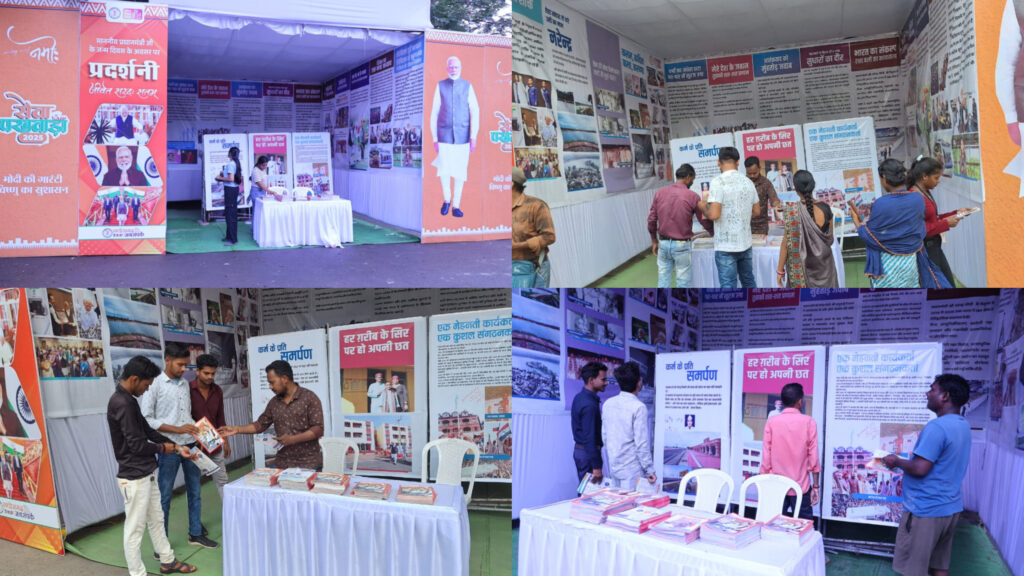 छायाचित्र के माध्यम से ‘एक पेड़ माँ के नाम’ अभियान के तहत पर्यावरण संरक्षण का संदेश, डिजिटल इंडिया से जुड़े नवाचार, शिक्षा क्षेत्र में आए क्रांतिकारी बदलाव, अंतरिक्ष शक्ति और रक्षा बलों के सशक्तिकरण को प्रभावशाली ढंग से प्रदर्शित किया गया। साथ ही आतंकवाद को मिले मुंहतोड़ जवाब और आत्मनिर्भर भारत की परिकल्पना को भी प्रमुखता से दिखाया गया। वर्षों का अंधेरा छटा- घर-घर में सूरज उगा थीम के तहत ऊर्जा क्रांति, मेरे देश के जवान तुझको शत-शत प्रणाम तथा प्रधानमंत्री मोदी के नेतृत्व में छत्तीसगढ़ को मिली सौगातों को भी प्रदर्शनी का हिस्सा बनाया गया। इस अवसर पर प्रदर्शनी का अवलोकन करने पहुंचे लोगों को जनसंपर्क विभाग द्वारा प्रकाशित शासन की योजनाओं और उपलब्धियों पर आधारित जनमन मासिक पत्रिका का नि:शुल्क वितरण भी किया गया।