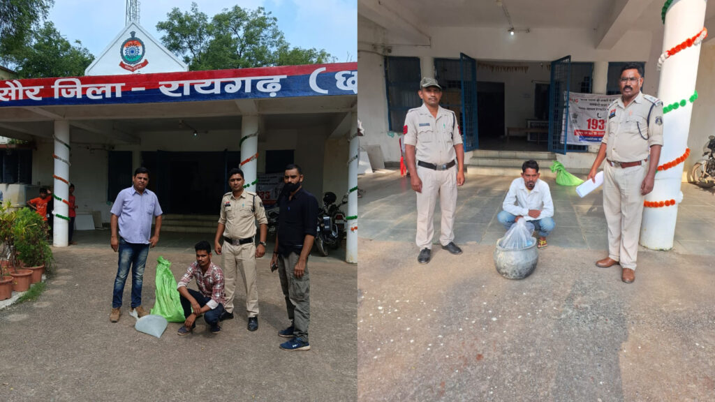 रायगढ़, 19 सितंबर। नशा मुक्ति को लेकर गांव-गांव में जागरूकता अभियान के बीच पुसौर पुलिस ने अवैध शराब कारोबार पर कार्रवाई करते हुए दो आरोपियों को पकड़ा है। ग्राम गुडू की पंचायत द्वारा हाल ही में गांव में बैठक कर शराब बनाने और बेचने वालों को समझाइश दी गई थी। इसी दौरान आज 19 सितंबर को ग्राम के लोगों ने सूचना दी कि योगेश सतनामी (33 साल) अपने घर में अवैध शराब बिक्री कर रहा है। थाना प्रभारी पुसौर निरीक्षक रामकिंकर यादव के निर्देश पर पुलिस टीम ने उसके घर दबिश दी, जहां आरोपी योगेश से अवैध बिक्री के लिये रखी 7 लीटर महुआ शराब जब्त की गई।