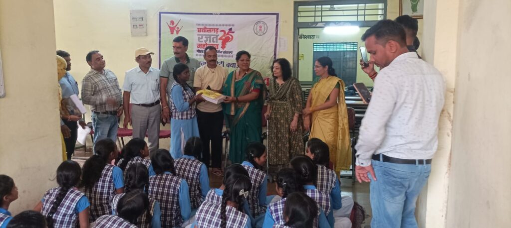 रायगढ़, 19 सितम्बर 2025/ छत्तीसगढ़ राज्य गठन के पच्चीस वर्ष पूर्ण होने के अवसर पर मनाये जा रहे रजत महोत्सव-2025 के उपलक्ष्य में बेटी बचाओ-बेटी पढ़ाओ योजना के प्रभावी क्रियान्वयन की दिशा में आज कलेक्टर श्री मयंक चतुर्वेदी के निर्देशन में शासकीय उच्च माध्यमिक विद्यालय, चांदमारी रायगढ़ में जरूरतमंद एवं गरीब बालिकाओं को स्टेशनरी सामग्री का वितरण किया गया। इस अवसर पर जिला पंचायत सदस्य श्रीमती सुषमा खलखो, पार्षद श्री अमित शर्मा सहित स्थानीय जनप्रतिनिणि उपस्थित रहे।