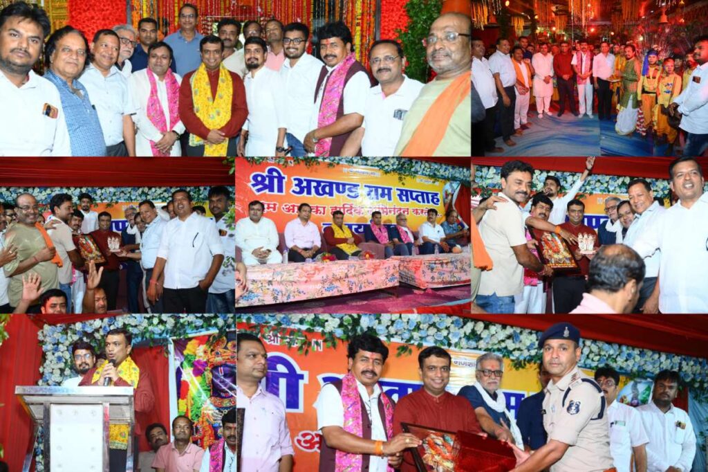 खरसिया के एसडीएम प्रवीण तिवारी भी हुए पालकी यात्रा में शामिल बाबा की पालकी लेकर चले साथ ही राम भजनों में झूमते नजर आए। वही नन्हे नन्हे बच्चे राम दरबार का स्वरूप बनकर रथ में विराजमान थे। पालकी यात्रा मंदिर प्रांगण पहुंचने के बाद बाबा की आरती हुई। इसके बाद समापन समारोह एवं सांस्कृतिक कार्यक्रम प्रारंभहुआ रायगढ़ जिला के पुलिस अधीक्षक दिव्यांग पटेल मुख्य अतिथि के रूप में पहुंचे बाबा का दर्शन का आशीर्वाद लिया। वही रूही अग्रवाल द्वारा शिव तांडव की शानदार प्रस्तुति दी गई। एवं मान्या अग्रवाल द्वारा सबरी के बेर की प्रस्तुति दी। तत्पश्चात पुलिस अधीक्षक ने अपने उद्बोधन में कहा जहां राम जी का अखंड राम सप्ताह हो ऐसा अद्भुत आयोजन हो वहा खुद भगवान विराजमान रहते है एवं पॉजिटिव एनर्जी रहती है।