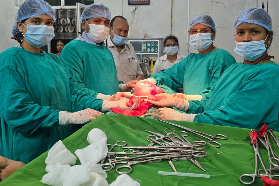 ऑपरेशन के दौरान एक हाथ में बच्चादानी, दूसरे हाथ में छोटा गोला, और ट्रे में बड़ा गोला निकाला गया। कुल मिलाकर लगभग 1.5 किलो और 200 ग्राम का मास बाहर निकाला गया।