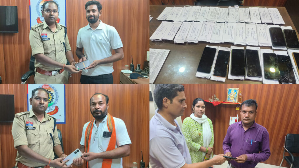 रायगढ़, 24 सितंबर। पुलिस अधीक्षक श्री दिव्यांग कुमार पटेल के दिशा-निर्देशन एवं साइबर सेल डीएसपी श्री अनिल कुमार विश्वकर्मा के मार्गदर्शन में जिले की साइबर सेल टीम लगातार गुम और चोरी हुए मोबाइलों की बरामदी में उल्लेखनीय सफलता हासिल कर रही है। इसी क्रम में कल साइबर डीएसपी अनिल विश्वकर्मा ने 35 गुम/चोरी मोबाइल उनके वास्तविक स्वामियों को अपने मातहत स्टाफ के हाथों लौटाया गया, जिससे मोबाइल पाने वाले लोगों के चेहरों पर संतोष और खुशी साफ झलकी। साइबर सेल की टीम ने CEIR पोर्टल और थानों को प्राप्त आवेदनों के आधार पर गुम/चोरी मोबाइल के आईएमईआई नंबर को ट्रेस किया। उपयोगकर्ताओं का पता लगने पर संपर्क कर उन्हें जब्त किया गया और कानूनी प्रक्रिया पूर्ण करने के बाद वास्तविक मालिकों को लौटाया गया। मोबाइल की बरामदी और सुपुर्दगी की इस कार्यवाही में साइबर सेल की पूरी टीम की अहम भूमिका रही।