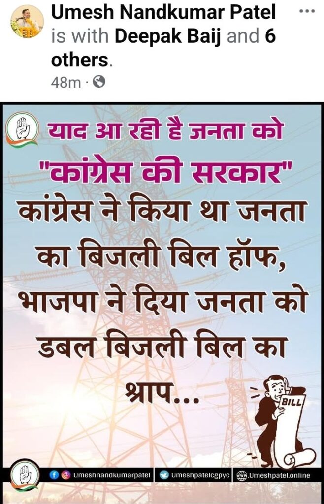 “याद आ रही है जनता को ‘कांग्रेस की सरकार’ कांग्रेस ने किया था जनता का बिजली बिल हॉफ, भाजपा ने दिया जनता को डबल बिजली बिल का श्राप…”