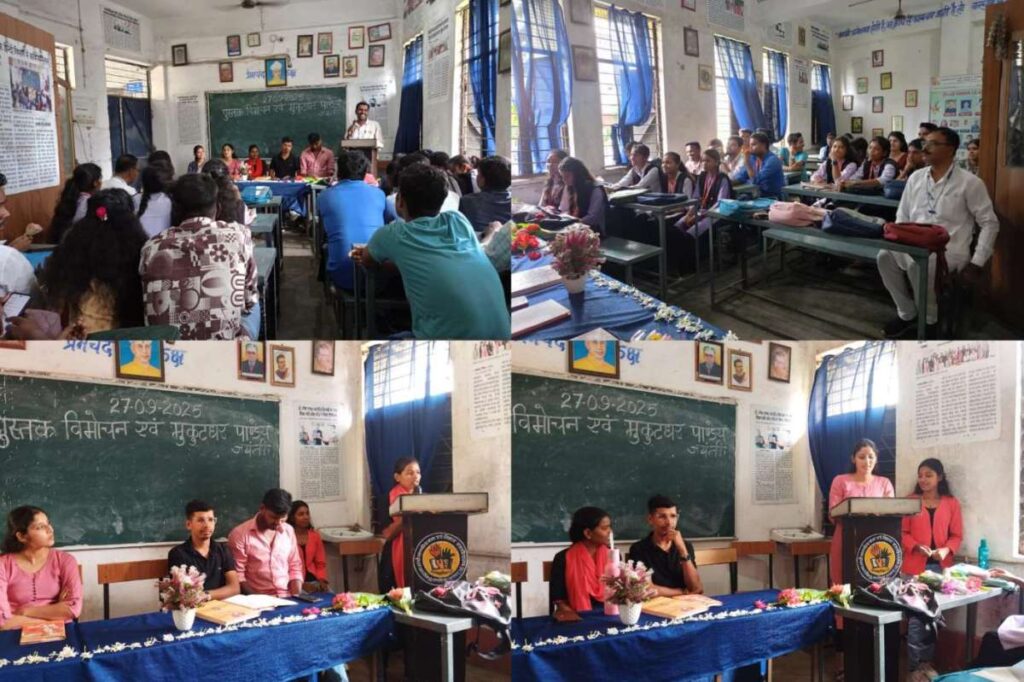 खरसिया। 30 सितम्बर 2025 को अवकाश रहने के कारण महात्मा गाँधी स्नातकोत्तर महाविद्यालय खरसिया के हिंदी विभाग में 27 सितम्बर 2025 को पद्मश्री पंडित मुकुटधर पाण्डेय की जयंती पूर्ण सादगी के साथ मनाई गई. उमा साहू और यामिनी राठौर के द्वारा प्रस्तुत शारदे वंदना के साथ विभागीय शिक्षकों डॉ आर के टंडन, डॉ. डायमंड साहू, प्रो. कुसुम चौहान, प्रो. अंजना शास्त्री ने सरस्वती माता की पूजा की. अंजली सिदार और कुंती सिदार ने राज्य गीत की प्रस्तुति दी. इसके पश्चात मंचासीन पूर्व छात्रों यामिनी राठौर, प्रियंका पटेल, दामोदर पटेल, पिंकी साहू, मुकेश कुमार राठिया का गुलदस्ते से स्वागत किया गया. मंचासीन छात्रों यामिनी राठौर, पिंकी साहू, दामोदर पटेल, एवं श्रोता छात्रों कौशलदास, रतिराम भारद्वाज, रामकुमार ने मुकुटधर पाण्डेय जी के व्यक्तित्व और छायावादी रचना संसार के बारे में विस्तार से अपने विचारों को व्यक्त किया.