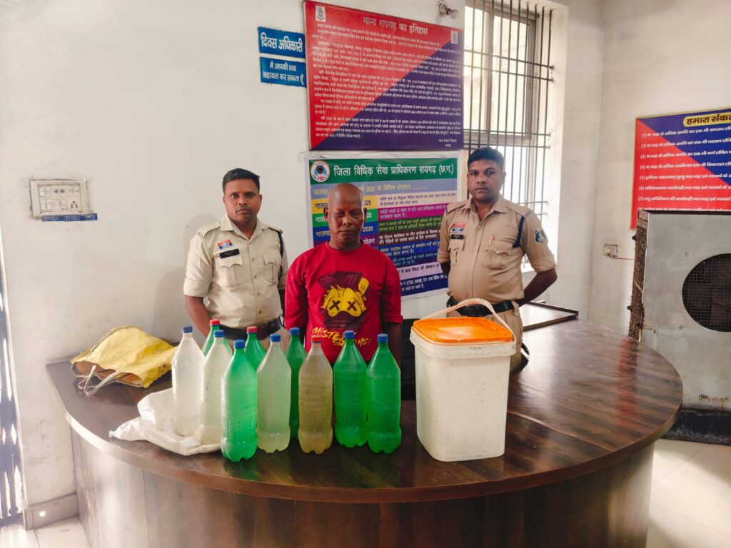 थाना प्रभारी कोतवाली निरीक्षक सुखनंदन पटेल को सूचना मिली थी कि टिकरापारा निवासी फानू उरांव अपने घर के आंगन में प्लास्टिक बोरी में रखकर कच्ची महुआ शराब बेच रहा है। सूचना पर थाना प्रभारी द्वारा टीम रवाना की गई। पुलिस टीम मौके पर पहुंची तो फानू उरांव पिता बुटिया उरांव उम्र 46 वर्ष निवासी टिकरापारा रायगढ़ अपने घर के आंगन में प्लास्टिक बोरी और थैले लेकर बैठा मिला। पूछताछ पर उसने शराब बिक्री की बात स्वीकारी, जिसके बाद उसके कब्जे से 25 लीटर हाथ भट्ठी से तैयार कच्ची महुआ शराब और बिक्री रकम ₹230 भी बरामद की गई। आरोपी फानू उरांव का कृत्य आबकारी अधिनियम की धारा 34(2), 59(क) के तहत अपराध पाए जाने पर उसे गिरफ्तार कर न्यायिक अभिरक्षा में भेजा गया है।