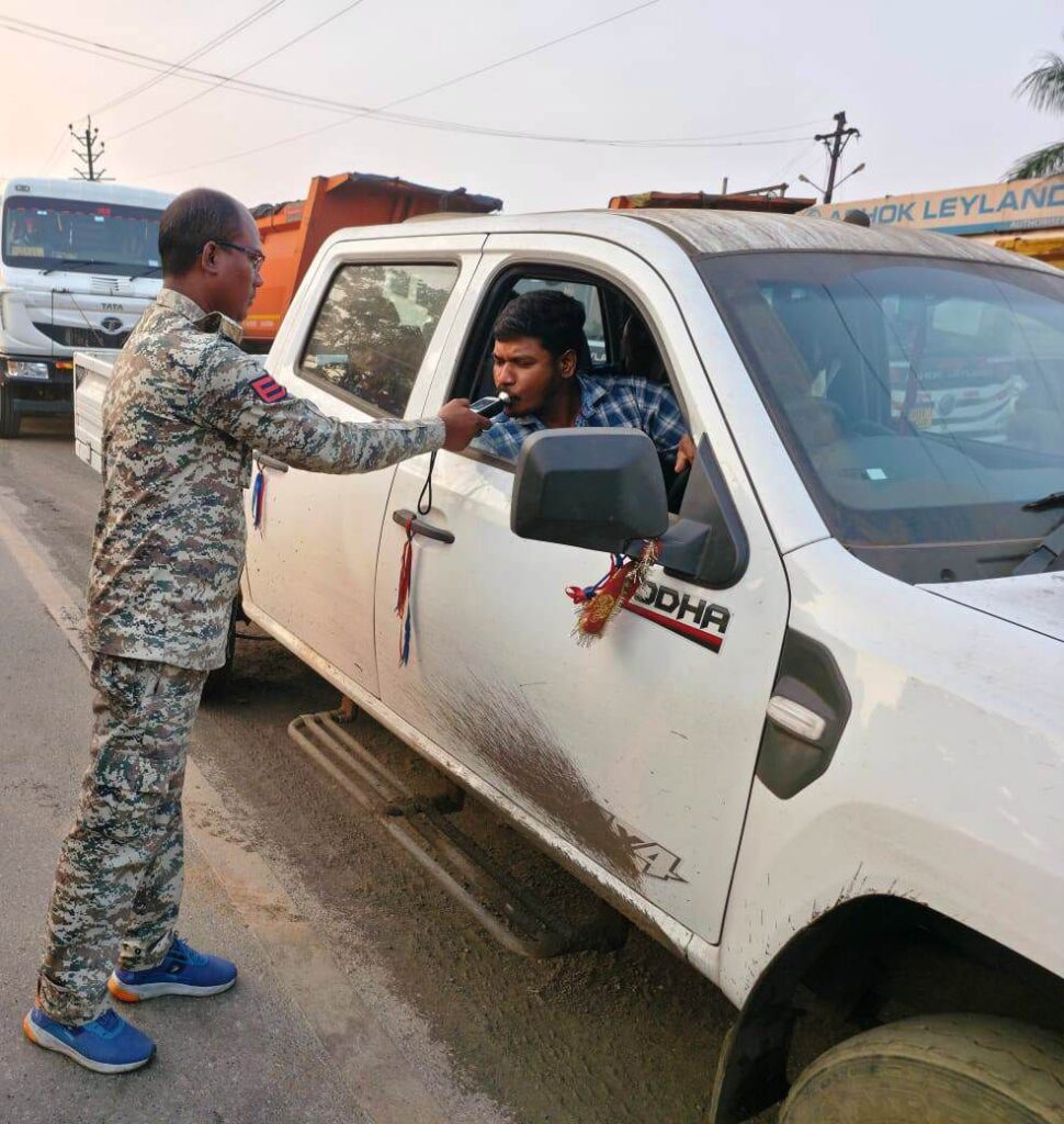 रायगढ़, 15 अक्टूबर। एसपी श्री दिव्यांग कुमार पटेल के दिशा निर्देशन एवं एडिशनल एसपी श्री आकाश मरकाम, डीएसपी ट्रैफिक श्री उत्तम प्रताप सिंह के मार्गदर्शन में कल दिनांक 14 अक्टूबर 2025 को जिले के सभी थाना क्षेत्रों में शराब पीकर वाहन चलाने वालों के विरुद्ध विशेष अभियान चलाया गया। अभियान के दौरान विभिन्न थानाक्षेत्रों में कुल 37 व्यक्तियों के विरुद्ध मोटर व्हीकल एक्ट की धारा 185 के तहत कार्रवाई की गई। इनमें कोतरारोड पुलिस ने सर्वाधिक 7 वाहन चालकों को पकड़ा है। सभी के विरुद्ध इस्तगाशा तैयार कर न्यायालय में पेश किए जाने की कार्यवाही की जा रही है।