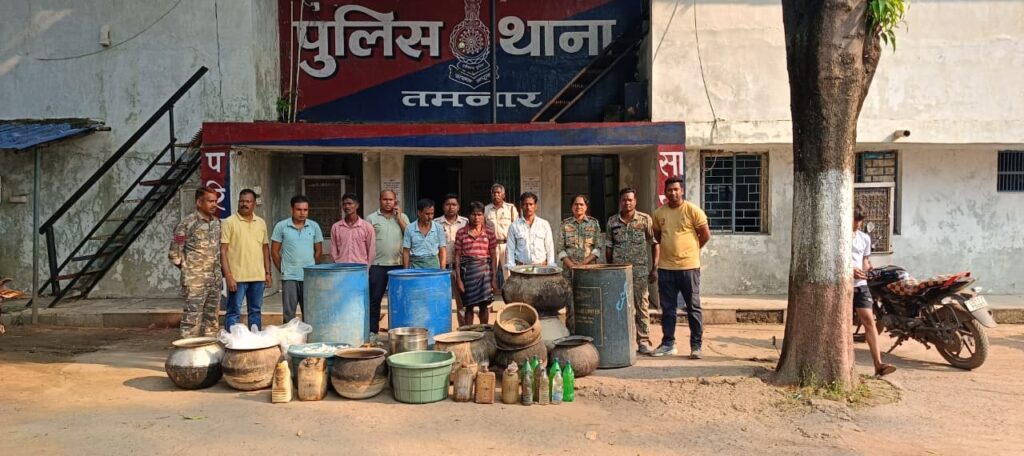 इस संयुक्त अभियान में थाना प्रभारी तमनार निरीक्षक कमला पुसाम ठाकुर, प्रधान आरक्षक हेम प्रकाश सोन, बनारसी सिदार, देवप्रसाद राठिया, अनूप कुजूर, उषारानी तिर्की आरक्षक पुष्पेंद्र सिदार, पुरुषोत्तम सिदार, शशि उरांव तथा साइबर सेल के प्रधान आरक्षक राजेश पटेल, बृजलाल गुर्जर, आरक्षक महेश पंडा, प्रशांत पंडा, सुरेश सिदार, विकास प्रधान, विक्रम कुजूर, पुष्पेंद्र जाटवर और रविंद्र गुप्ता की अहम भूमिका रही। जिले में किसी भी प्रकार की अवैध शराब की गतिविधि बर्दाश्त नहीं की जाएगी। त्योहारी सीजन में ऐसे अवैध कारोबारियों के विरुद्ध लगातार सख्त और निरंतर कार्रवाई जारी रहेगी।