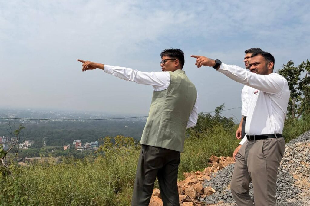 रायगढ़, 22 अक्टूबर 2025/ रायगढ़ के गजमार पहाड़ स्थित प्रसिद्ध हनुमान मंदिर परिसर में जारी सौंदर्यीकरण एवं अन्य विकास कार्यों का प्रदेश के वित्त मंत्री श्री ओ.पी.चौधरी ने निरीक्षण किया। इस दौरान उन्होंने निर्माण कार्यों की प्रगति की विस्तृत समीक्षा की और संबंधित अधिकारियों को आवश्यक दिशा-निर्देश भी दिए। इस अवसर पर कलेक्टर श्री मयंक चतुर्वेदी एवं डीएफओ रायगढ़ श्री अरविंद पी.एम.उपस्थित रहे।