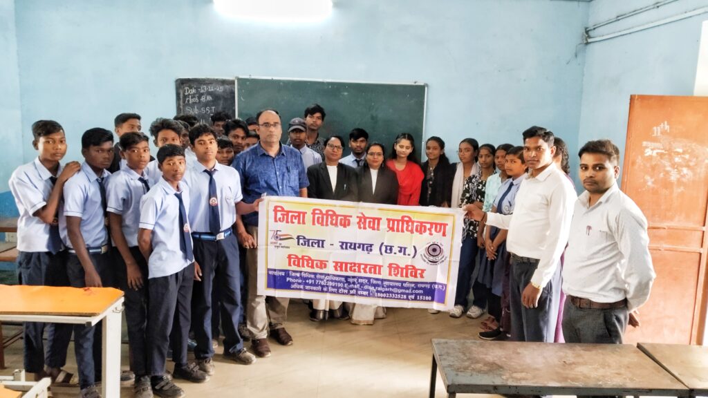 रायगढ़। छत्तीसगढ़ राज्य विधिक सेवा प्राधिकरण बिलासपुर के निर्देश पर घरघोड़ा नवापारा में बाल दिवस के अवसर पर विधिक जागरूकता शिविर का आयोजन किया गया। यह शिविर पी एम श्री शासकीय स्वामी आत्मानंद विद्यालय घरघोड़ा में हुआ, जिसका मार्गदर्शन प्रधान जिला न्यायाधीश/अध्यक्ष श्री जितेंद्र जैन जिला विधिक सेवा प्राधिकरण रायगढ़ एवं विशेष न्यायाधीश/अध्यक्ष श्री शहाबुद्दीन कुरैशी तालुका विधिक सेवा समिति घरघोड़ा तथा एडीजे श्री अभिषेक शर्मा जी के तत्वाधान में एवं सचिव श्रीमती अंकिता मुदलियार ने किया। पैरालीगल वालिंटियर बालकृष्ण थाना पूंजीपथरा एवं टीकम सिदार थाना तमनार ने बच्चों को संबोधित किया एवं बाल दिवस के संबंध में जानकारी प्रदान किया गया।
