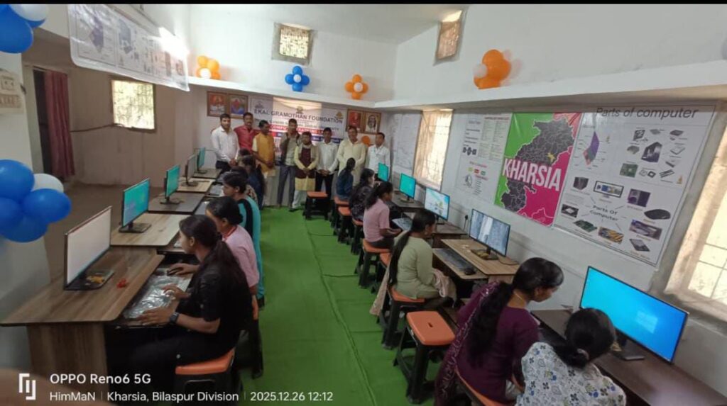 खरसिया। एकल ग्रामोत्थान फाउंडेशन के तत्वावधान में पामगढ़ में दिनांक 26 दिसंबर 2025 को कंप्यूटर ट्रेनिंग लैब (CTL) का भव्य उद्घाटन समारोह अत्यंत सकारात्मक, प्रेरणादायक और उत्साहपूर्ण वातावरण में संपन्न हुआ। कार्यक्रम का शुभारंभ सरस्वती माता एवं भारत माता के छायाचित्र पर पुष्प अर्पण, दीप प्रज्ज्वलन, ॐ उच्चारण एवं गायत्री मंत्र के सामूहिक पाठ के साथ किया गया। इस अवसर पर शिक्षा, तकनीक और ग्रामीण सशक्तिकरण के महत्व पर प्रकाश डाला गया।