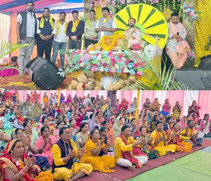 खरसिया। विकासखंड खरसिया के ग्राम नवापारा में महिला मंडल द्वारा संगीतमय श्रीमद्भागवत कथा का आयोजन भक्तिभावऔर श्रद्धा के साथ किया जा रहा है व्यास पीठ पर विराजित सुप्रसिद्ध कथावाचक भगवताचार्य पंडित दीपक कृष्ण शास्त्री जीके मुखारविंद से भावपूर्ण कथा का वाचन किया जा रहा है कथा के अंतिम दिवस परीक्षित मोक्ष कथा का वर्णन किया और शास्त्री जी ने कथा वाचन करते हुए कहा कि इस दुनिया से खाली हाथ जाना है जितना आप धर्म कर्म और राम का नाम जमा कर सकते हैं वही आपके साथ जाएगा। आपकी कमाई हुई धन दौलत किसी और के ही काम आएगी। कथा के अंतिम दिवस छाया विधायक महेश साहू ने हितेश सोनू द्विवेदी, रवींद्र गवेल तीउर, कैलाश शर्मा, लक्ष्मी पटेल, विक्की महंत के साथ कथा स्थल पर पहुंचकर कथा श्रवण का पुण्य प्राप्त करते हुए व्यास पीठ पर विराजित पंडित दीपक कृष्ण शास्त्री जी से क्षेत्र की उन्नति प्रगति और खुशहाली का आशीर्वाद लिया।श्रीमद्भागवत कथा में ग्रामवासियों, महिला समिति और गणमान्य नागरिकों का विशेष योगदान रहा।श्रीमद्भागवत कथा में नवापारा सहित आसपास के समीप क्षेत्रवासी भक्तगणों ने भारी संख्या में उपस्थिति दर्ज कराते हुए अपने जीवन को सफल किया।