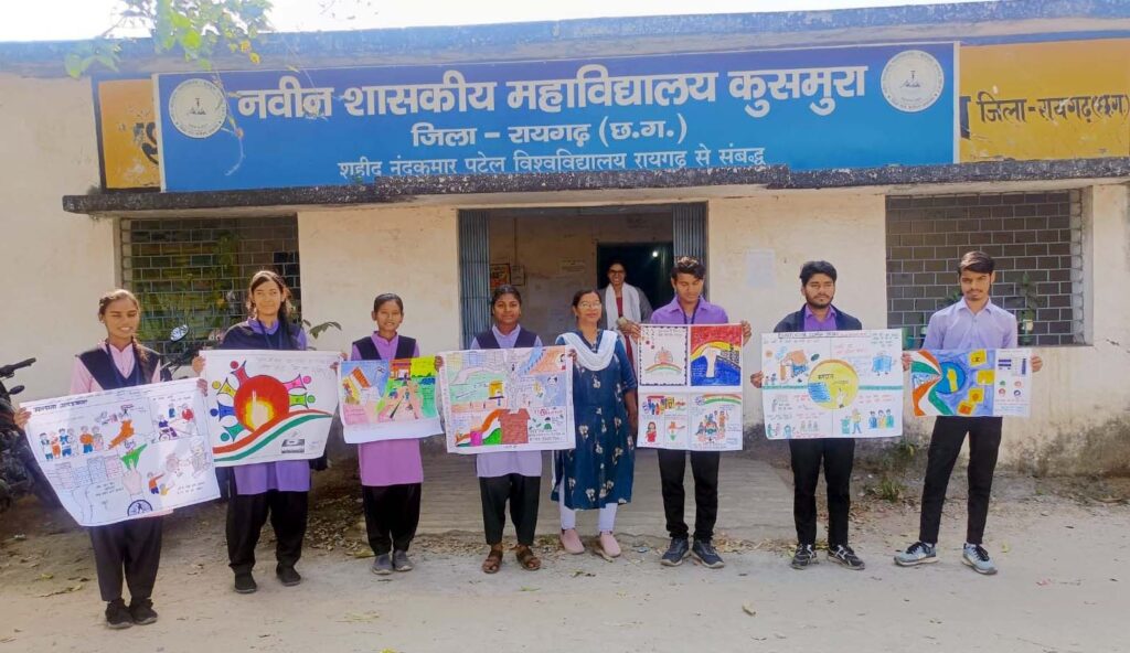 रायगढ़, 22 जनवरी 2026/ कलेक्टर एवं जिला निर्वाचन अधिकारी श्री मयंक चतुर्वेदी के निर्देशानुसार युवाओं में लोकतांत्रिक सहभागिता को सशक्त बनाने तथा उन्हें मताधिकार के महत्व के प्रति जागरूक करने के उद्देश्य से जिले में स्वीप गतिविधियों के अंतर्गत मतदाता जागरूकता संबंधी व्यापक कार्यक्रमों का आयोजन किया गया। इसी क्रम में शासकीय महाविद्यालय, धरमजयगढ़ में मतदाता जागरूकता विषय पर पोस्टर प्रतियोगिता आयोजित की गई, जिसमें छात्र-छात्राओं ने उत्साहपूर्वक भाग लेकर मतदान के महत्व, लोकतांत्रिक अधिकारों एवं जिम्मेदारियों को रचनात्मक ढंग से प्रस्तुत किया। वहीं कुसमुरा कॉलेज में रंगोली प्रतियोगिता, पोस्टर मेकिंग सहित विविध रचनात्मक गतिविधियों के माध्यम से विद्यार्थियों को निष्पक्ष, निर्भीक एवं जिम्मेदार मतदान के लिए प्रेरित किया गया।